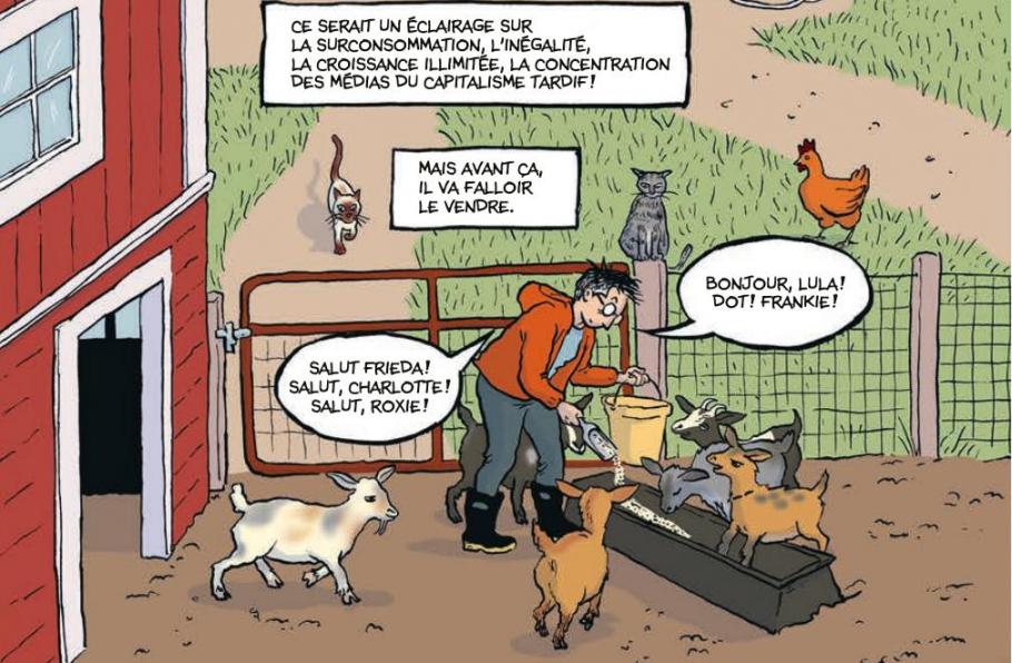 Nous voici donc chez Alison Bechdel, en couple avec Holly, dans le Vermont, sauf que celles-ci élèvent des chèvres naines du Pérou et qu’Alison cherche toujours un successeur, si possible avec un fond marxiste, à Mort et taxidermie, le roman graphique qu’elle avait consacré à son père empailleur. Autour d’elles, une vie pas toujours simple de néorurales à gérer et une bande d’amis et de copines revenus de ses (vrais) strips, Les Gouines à suivre, désormais plus «boomers» que «queers»! Ielles aussi n’y comprennent rien à la nouvelle génération, ne s’y retrouvent plus eux-mêmes dans leurs interdits lexicaux ou le labyrinthe de leurs polyamours qui n’empêchent pas le ridicule, et eux aussi crachent sur les énergies fossiles… avant de s’envoler au Mexique. Une succession de scènes drôles, bourrées d’une autodérision qu’on ne lui connaissait pas, et qui continuent, avec un sourire parfois triste, à poser les bonnes questions et à rendre fou le réac redevenu son président. «L’espoir est un impératif politique», glisse Alison Bechdel à cette Amérique qui ne veut pas d’elle(s) et qui, désormais, l’interdit même dans de nombreuses bibliothèques. Elle ne pouvait pas mieux leur répondre qu’avec ce nouvel opus d’une autrice, certes, lessivée, parfois bavarde, et désormais plus proche de Posy Simmonds (la grande autrice anglaise), que de Peaches (l’icône queer et punk), mais d’évidence épanouie et heureuse, malgré eux. Prends ça, Donald!