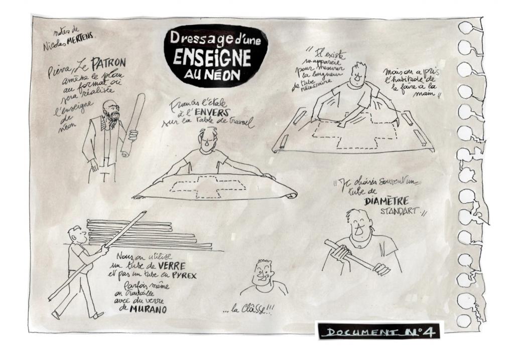 Ce coin singulier de Bruxelles, Jean-Claire Lacroix le découvre il y a presque 30 ans, en prenant tous les jours cette fameuse ligne 54. «J’ai d’abord découvert « le musée espagnol », une maison du XVIe siècle du coté de Vilvoorde, comme on en trouve sur la Grand-Place, avec toute une histoire derrière elle. Puis le château Beaulieu, sur la commune de Machelen, mais lui aussi en bordure de canal, construit au XVIIe siècle par la famille Tours et Taxis, qu’un certain Charles Mertens, en 1944, a récupéré et voulu restaurer, jusqu’à la ruine. Là, je savais que je tenais une histoire, quelque chose, mais il me manquait la troisième pointe du triangle –c’est Yann, le scénariste, qui m’avait dit que c’était important, le triangle! Jusqu’à ce que je découvre un bâtiment industriel abandonné, un des seuls à avoir tiré parti à la fois de la Senne et du canal, qui faisait littéralement le pont entre deux rives, entre Bruxelles et la Région flamande, entre deux communautés. J’avais par ailleurs découvert l’art du néon des années plus tôt, j’en ai fabriqué moi-même, j’ai toujours voulu là aussi en faire des histoires. J’ai donc installé sur ce site ma fabrique «Lucien, néons», et tout s’est mis en place.»