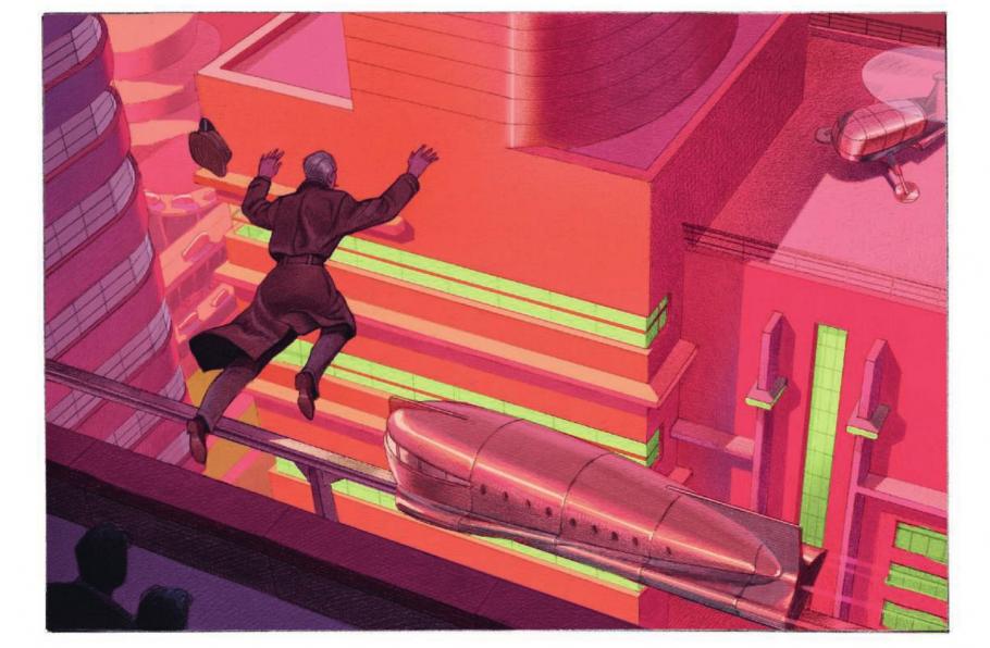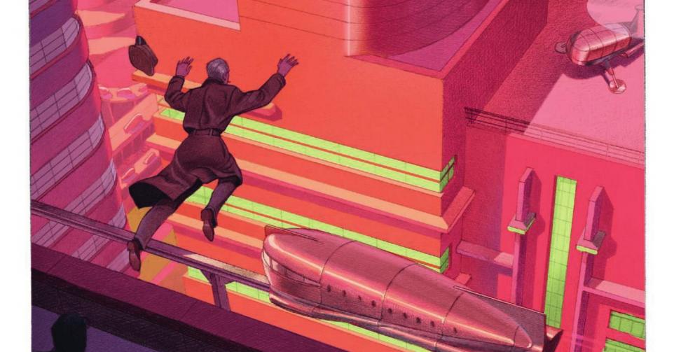 Dans ce très beau demi-format à l’italienne proposant un récit écrit par le couple de cinéma James Huth/Sonja Shillito (lequel a longtemps travaillé sur une adaptation cinéma) et illustré par le classieux, très coté et rétrofuturiste Laurent Durieux, le duo se retrouve miniaturisé et plongé dans la maquette d’une ville futuriste, pour y affronter Miloch, Septimus, Voronov et une quinzaine d’Olrik! De quoi donner naissance à de sacrés beaux dessins aussi «jacobsiens» que «durieuesques», à voir voire à s’offrir en grand dès le mois de janvier à la galerie Huberty & Breyne, à Bruxelles.