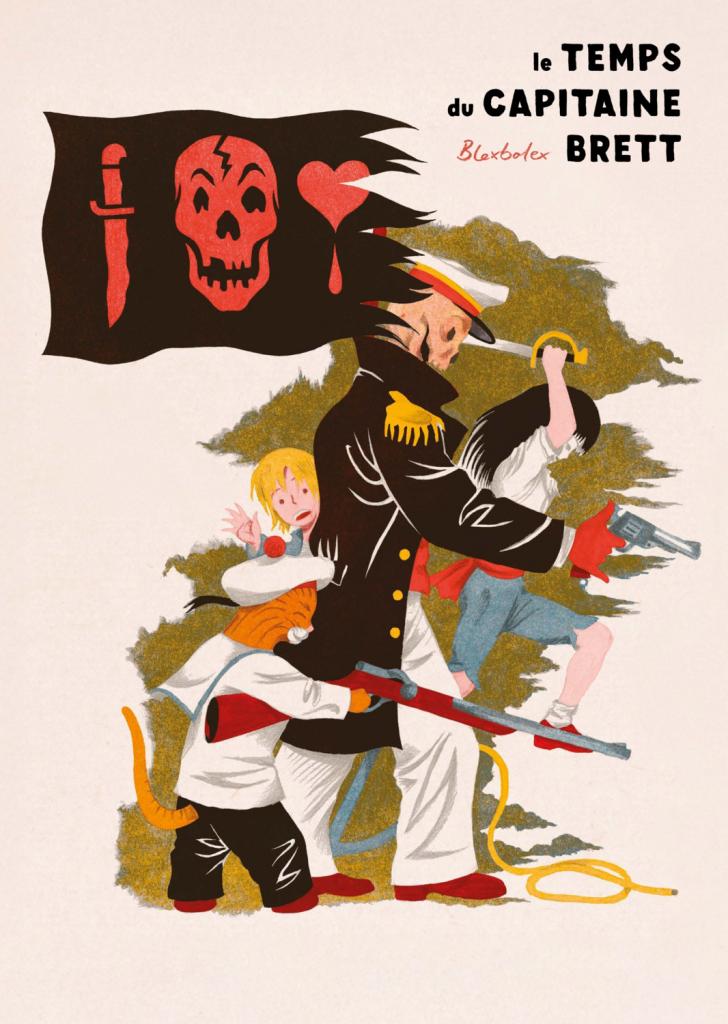 Le jeune Hyéronimus se décide enfin à sortir de son «cocon de calme et d’ennui», et le voilà embarqué de force sur la barque du Capitaine Brett –«une trogne répugnante, pareille à une pomme de terre pourrie et affublée d’un sourire ciselé au couteau»– accompagné d’un chat-mousse et d’une jeune fille au masque de porcelaine. «Et commença alors un après-midi de pure démence»… Blexbolex réinvente une nouvelle fois les rapports texte-image et le récit illustré avec ce livre aussi fantastique que beau, entre aventure de pirate et roman initiatique, et surtout, entre nostalgie du beau livre et œuvre contemporaine. Un retour, aussi, au papier, à l’encre et à la gouache. Que du bonheur!
