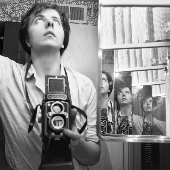 Entre le monde et elle, Vivian Maier (1926-2009) a interposé un appareil photo. Totalement invisibilisée au sein de la société dans laquelle elle évoluait, celle qui fut un être sans attache s’est servi compulsivement de la pellicule pour attester de son existence. En ce sens, ses autoportraits, qui furent nombreux -on les estime aux alentours de 6 000 en 45 années de production-, se lisent comme la métaphore de son besoin de faire trace. Qu’elle projette son ombre sur le derrière boueux d’un ouvrier en pleine action ou qu’elle s’immortalise dans un kaléidoscope de lumières et de reflets, Maier épuise brillamment le genre de l’autoreprésentation.