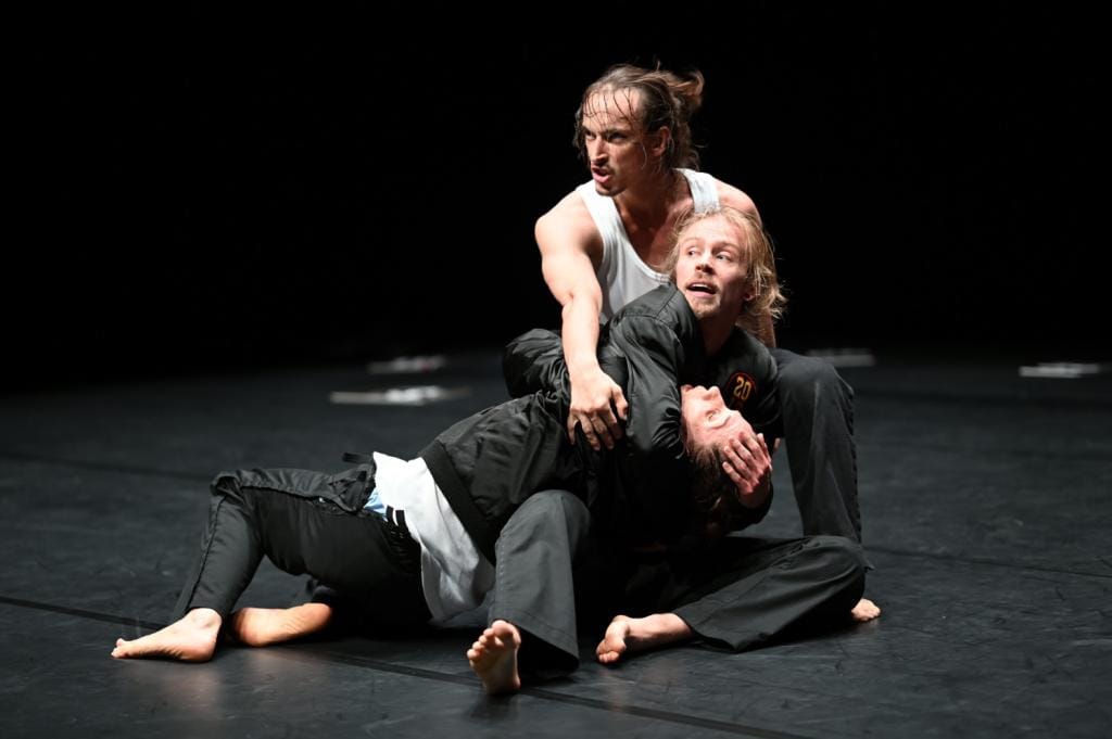 Noir sur scène. Un écran au fond. Des voix criardes inintelligibles. Des sous-titres. Lumière. Trois corps habillés de noir dansent les mots. Ça parle de bataille, de combat, de mise en garde. C’est le «clash des Lopez», une rixe verbale entre deux clans gitans qui a fait le buzz sur le Net en 2012. C’est retravaillé comme une bande-son, dansé comme un combat chorégraphié. Millimétré, puissant. La Brabançonne s’invite çà et là. Il y a des coups, des silences parfois, des corps comme des mots, pour revenir «plus» –plus forts, plus grands–, cassés parfois, mais toujours aussi précis. Le silence en impose autant que les gestes durant ces 50 minutes d’énergie pulsée, ultraréfléchie. Ils sont trois en scène, mais ils embarquent une foule de colères et de discours, leur corps réveillent les haines et les humours, les interrogations de la virilité exprimée et débridée. Ça bouscule et ça énergise. C’est vital et vivant. C’est T’façon on est en 2012. A voir, urgemment.